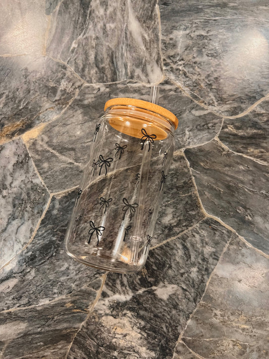 mini bows 12oz glass cup w/ lid