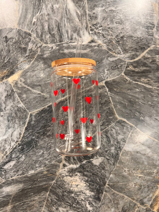 mini hearts 12oz glass cup w/ lid