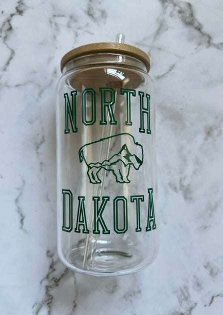 Sold outNorth Dakota 16oz glass cup w/ lid